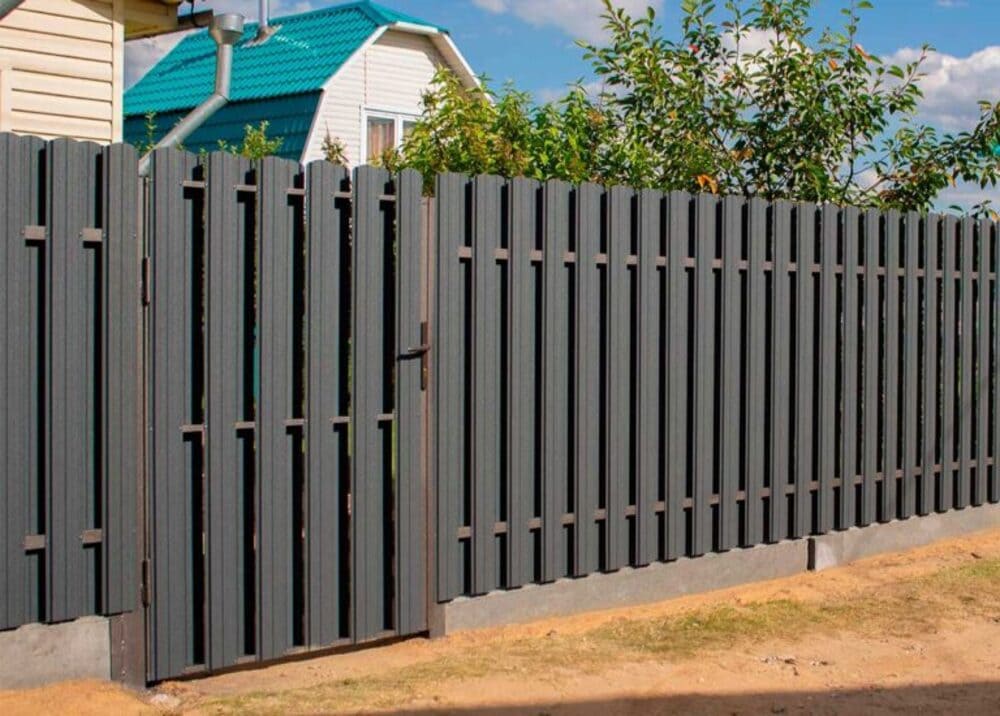 Штакетник крепится горизонтально к вертикальным стойкам.