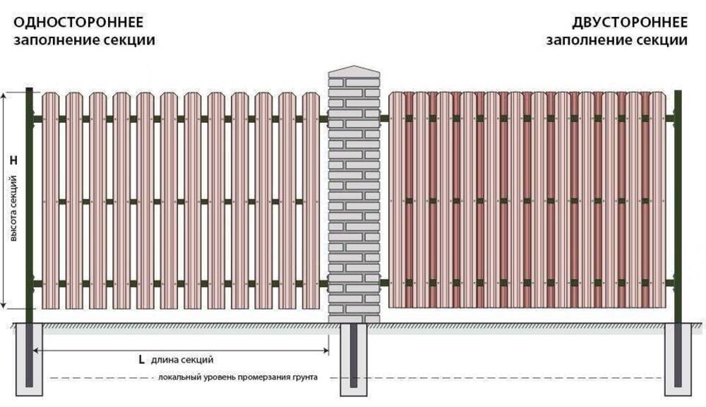 Тип штакетника – металлический, деревянный, пластиковый (их ширина и толщина влияют на жесткость).