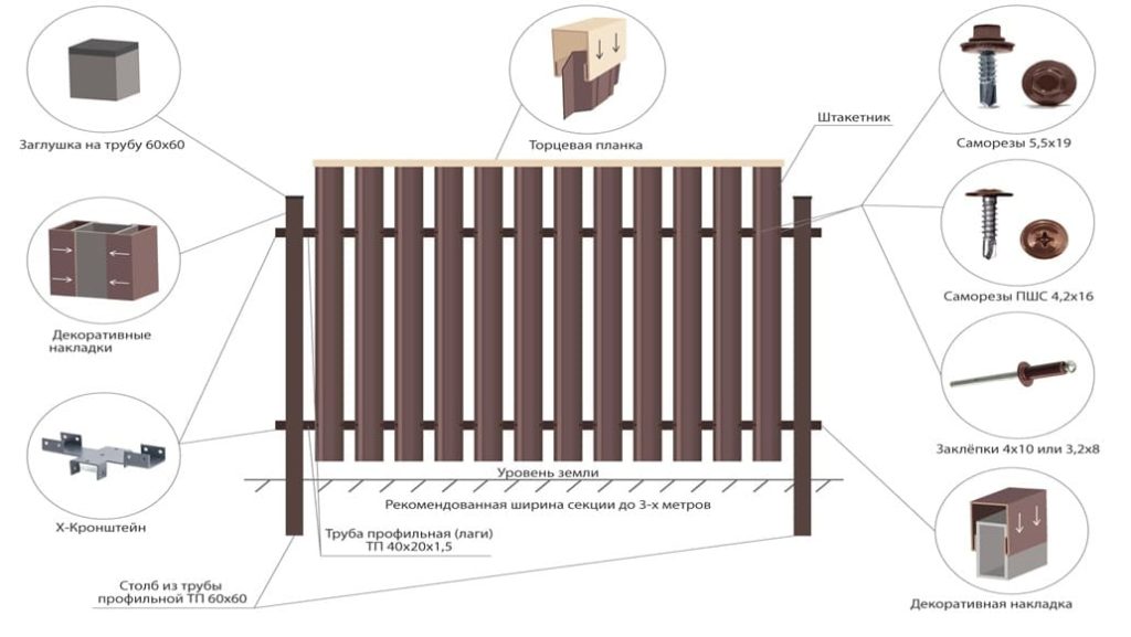 — Используйте коррозионно-стойкие крепежи и качественные заглушки на концах штакетов.