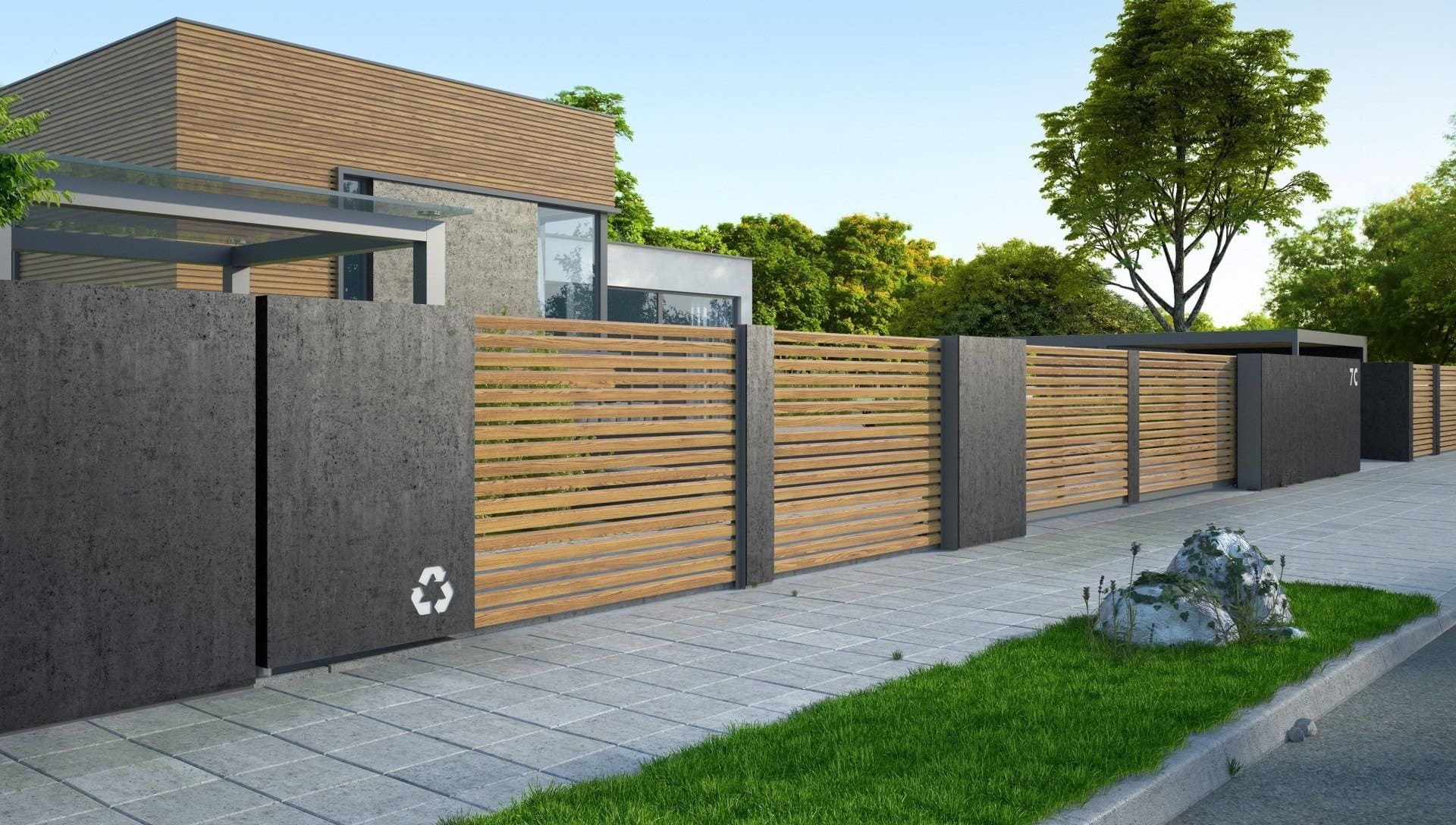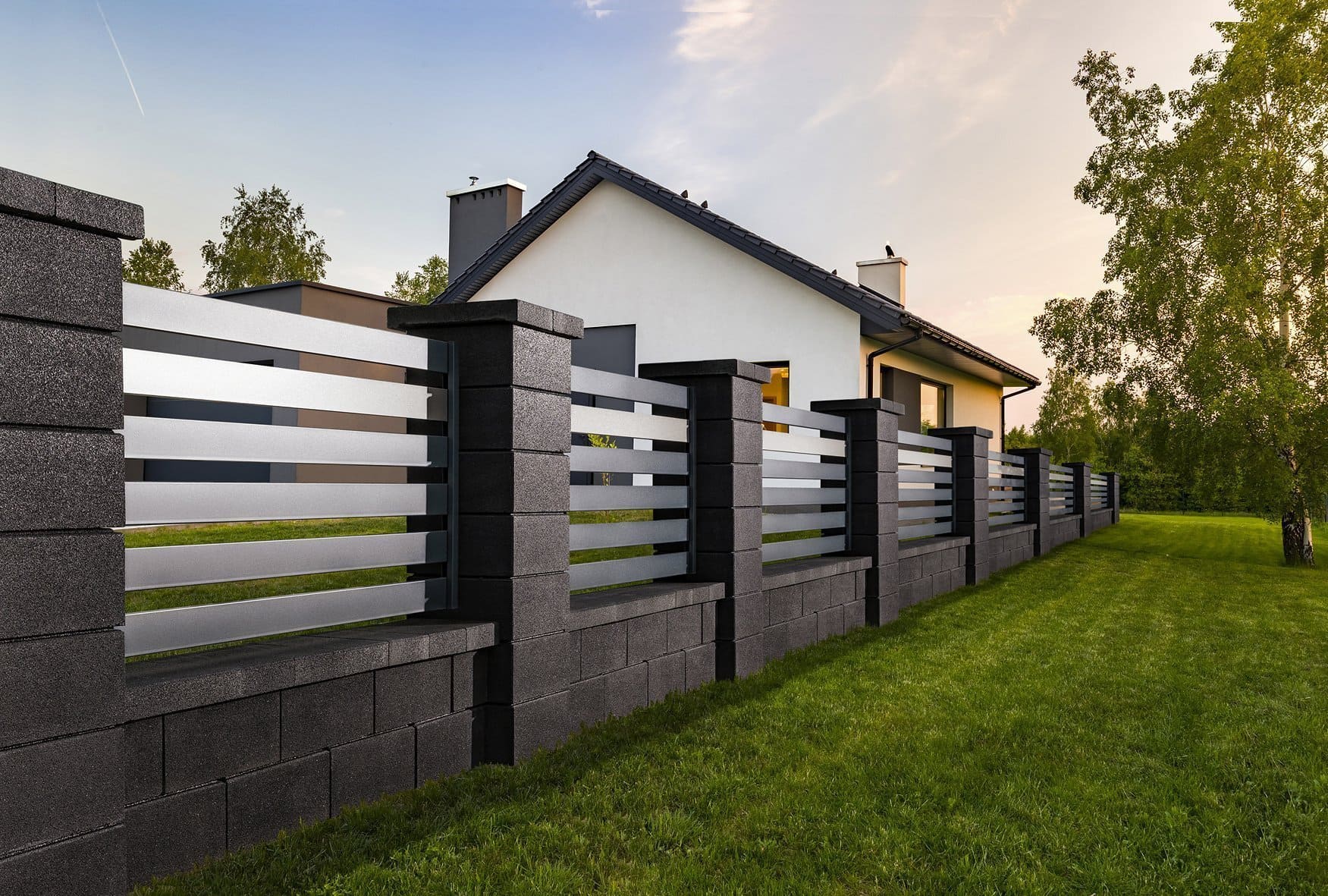 Ламели монтируют на каркас на расстоянии от 2 до 10 см друг от друга. Это позволяет проектировать заборы с разным уровнем светопрозрачности. Планки можно устанавливать с одной или с обеих сторон каркаса. Двусторонний забор практически не просматривается и со стороны выглядит как сплошной. Благодаря промежуткам, между штакетинами проходит солнечный свет, обеспечивается свободная циркуляция воздуха.